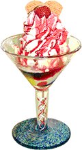 1 Esslöffel Moosbeerensaft über Vanilleeiscreme geben