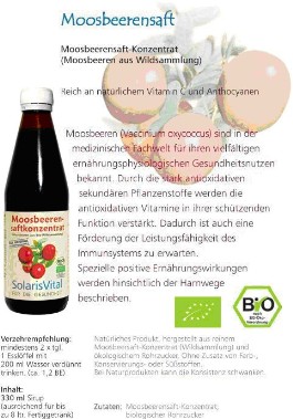 Der Moosbeerensaft von Solaris ist ein natürliches Produkt, hergestellt aus reinem Bio-